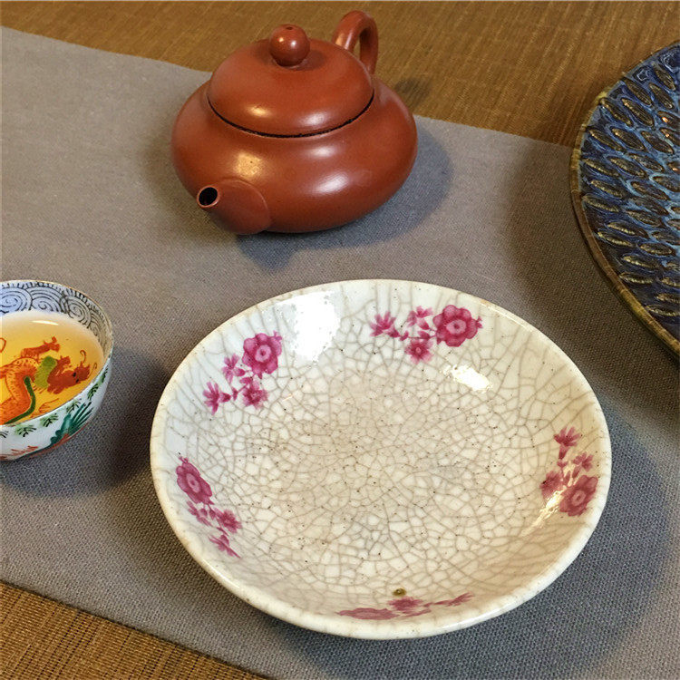 潮汕文化斋七八十年代哥釉老茶垫工艺品贴花杯托茶具碟子盛器热门设计联盟服务商