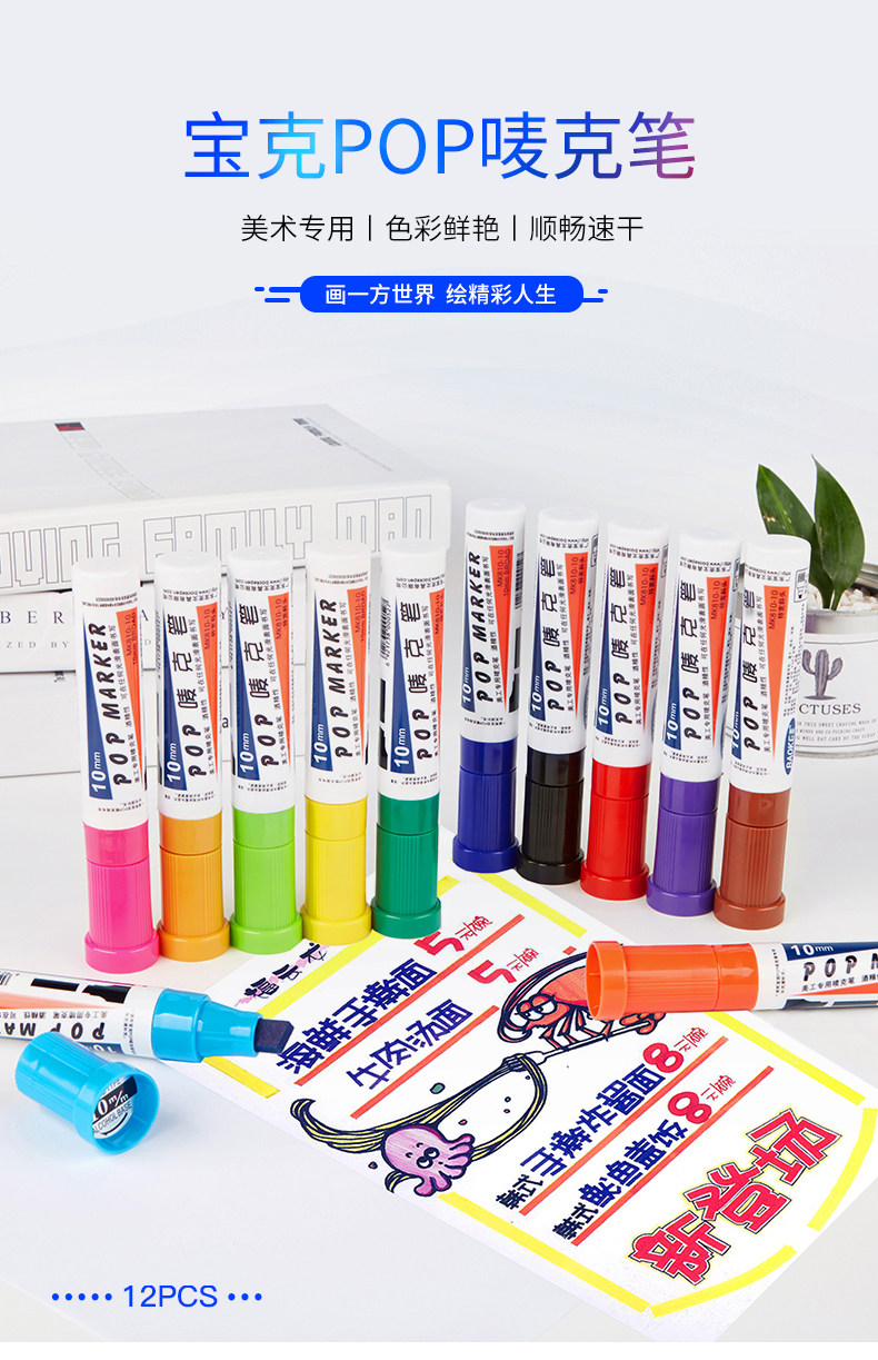 宝克pop笔10mm马克笔彩色绘画麦克笔手绘笔广告设计专用笔海报笔热门设计联盟服务商