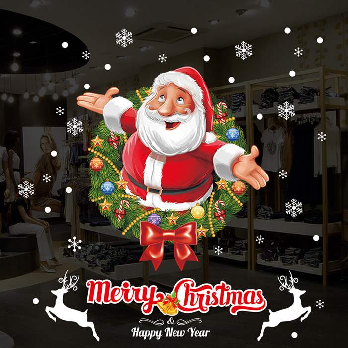 装饰元旦店铺圣诞节墙贴商场玻璃贴纸橱窗窗花布置雪花老人花环。热门设计联盟服务商
