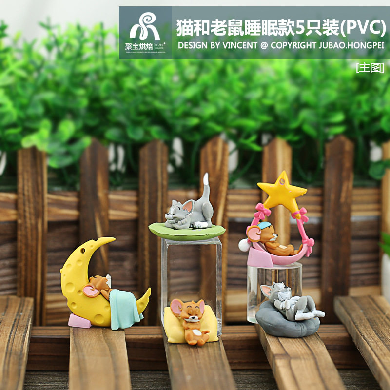 5只装生日蛋糕装饰摆件盲盒微景观蛋糕烘焙装饰猫和老鼠睡眠款热门设计联盟服务商