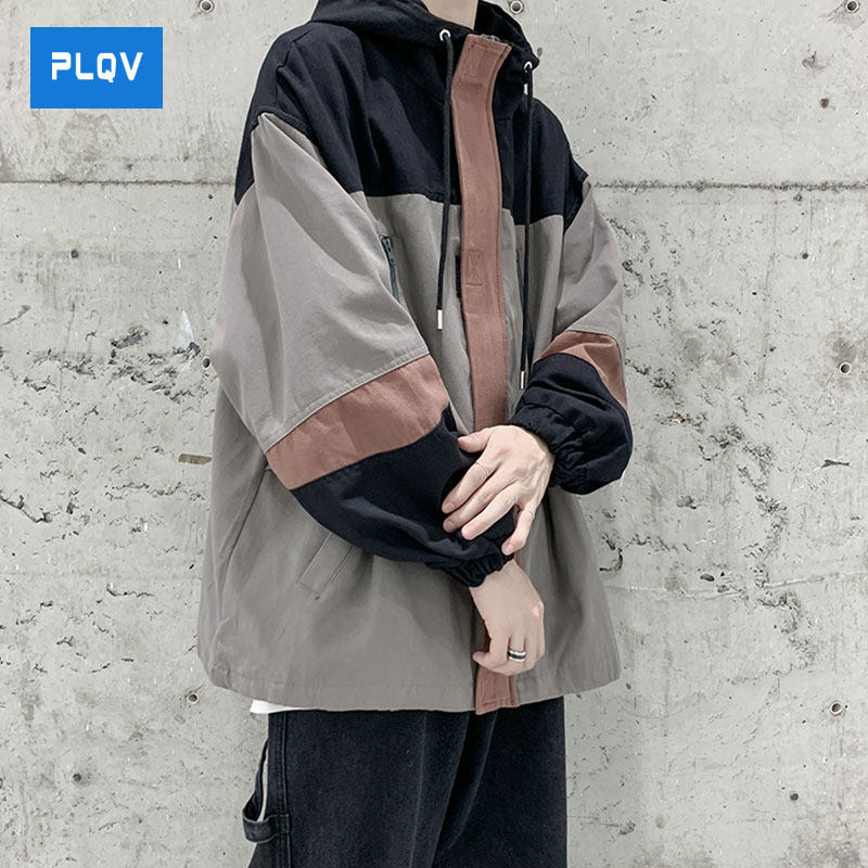 外套男装春秋季新款ins潮牌痞帅工装连帽拼色夹克宽松复古ins上衣热门设计联盟服务商