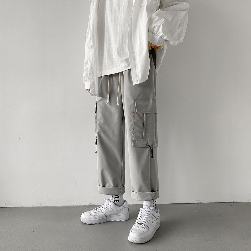 抽绳束脚多口袋工装裤男秋季潮牌ins宽松直筒裤子男韩版潮流学生热门设计联盟服务商